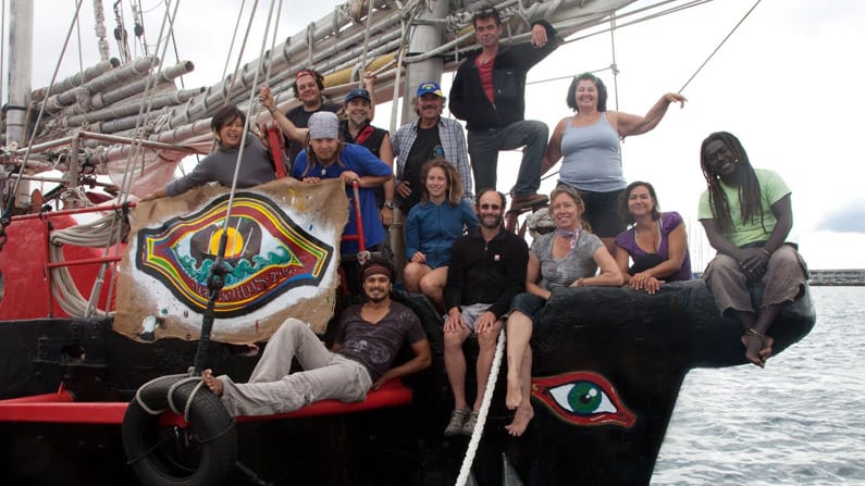 RV Heraclitus, the Chinese-junk sailing ship built and owned by the Institute of Ecotechnics in San Francisco, has sailed the world’s oceans since 1975 voyaging more than 270,000 nautical miles in the Atlantic, Indian Ocean, Pacific, Antarctic Ocean, including a 3,700 km trip up the Amazon River.